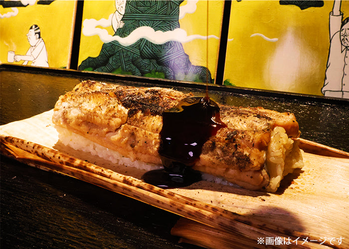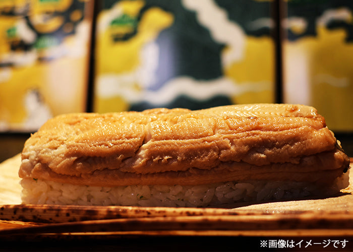 あえて押し寿司の様に握らず、酢橘で味を整えたシャリに煮穴子を乗せて備長炭で炙ってあります。
